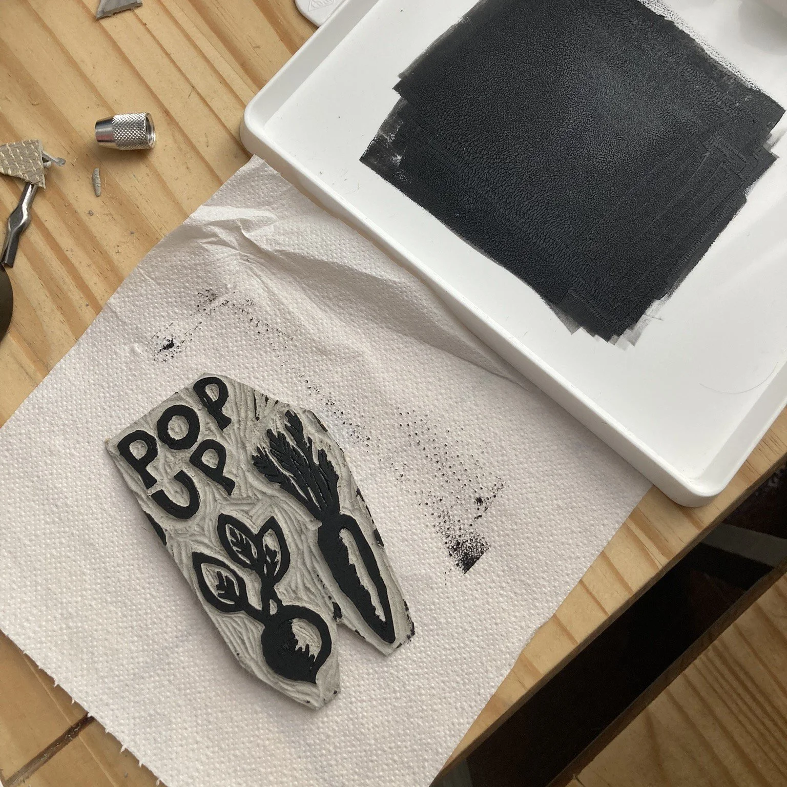 Pop Up Plymouth was a university project to create a brand identity and assets for a monthly local produce market in Plymouth. I used lino cut printing to achieve a rustic, handmade feel throughout the branding and supporting illustrations.